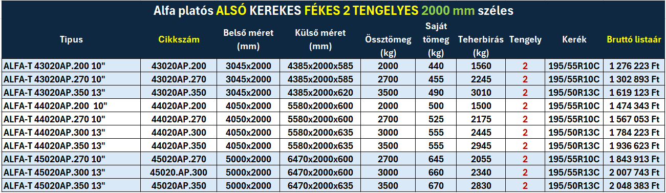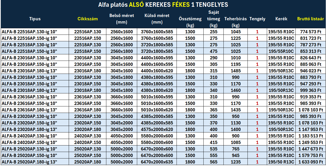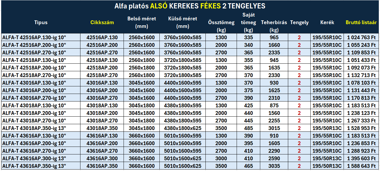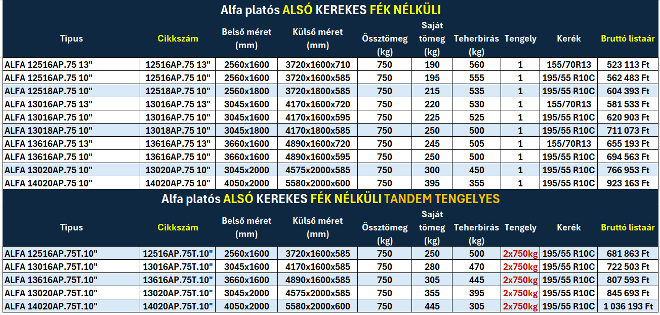 Alfa platós alsó kerekes utánfutók