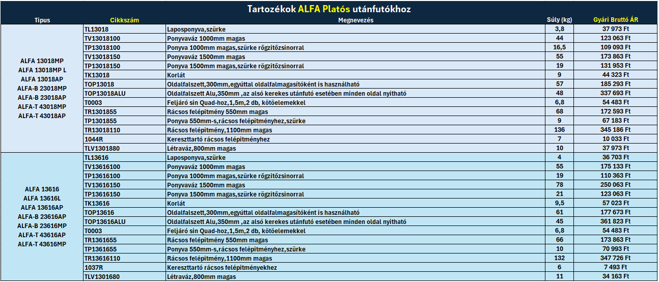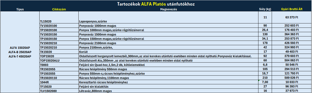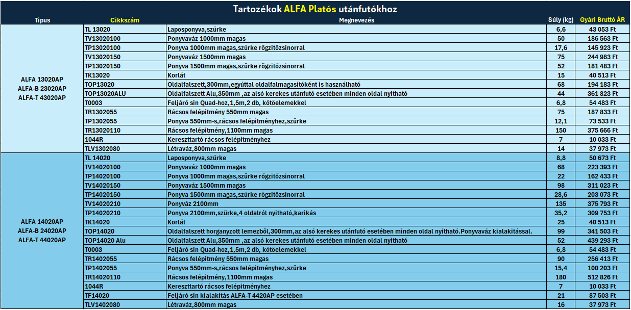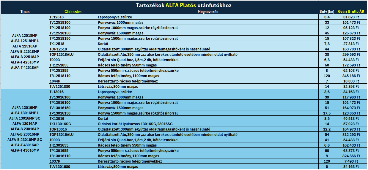 Fontos szempont, hogy a tartozékok növelik a saját tömeget, így összességében csökkentik a hasznos teherbírást. A tervezés során mindig figyelembe kell venni a kiegészítők súlyát, és úgy megválasztani a típust, hogy a kiegészítőkkel együtt is megmaradjon a kellő teherbírás!