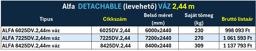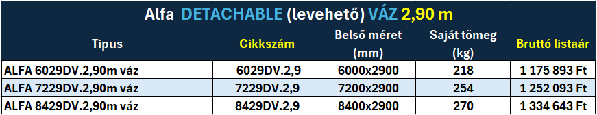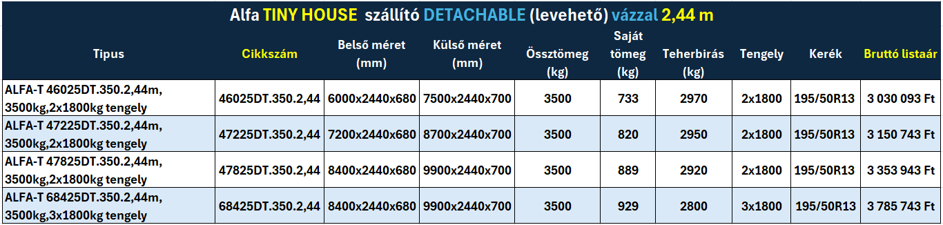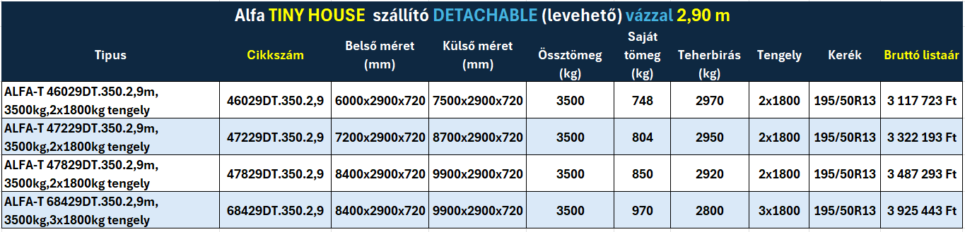 Alfa TINY HOUSE szállító DETACHABLE (levehető) vázzal + vázszerkezetek